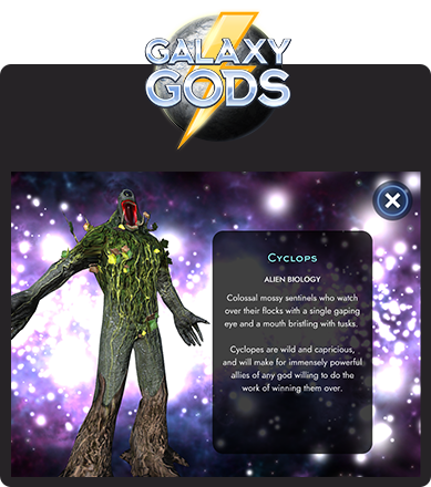 Expand your star system and strike other gods, form pantheons and join galactic missions, and your name will be praised in songs across the universe.